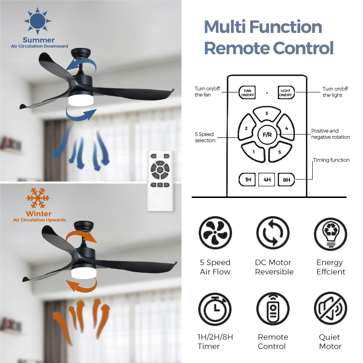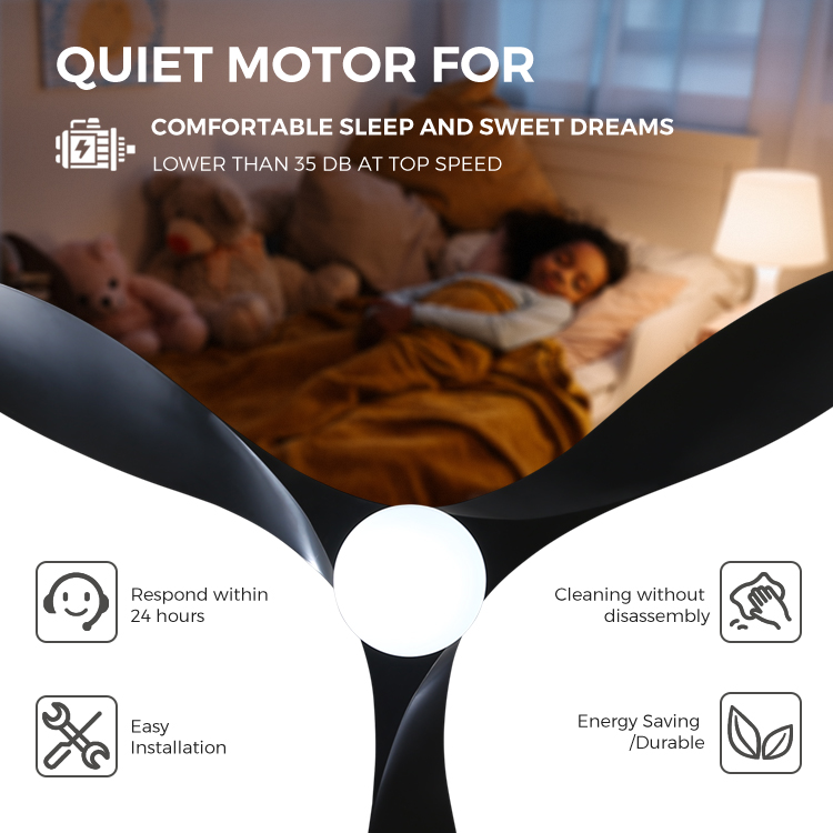 * DC Motor : Motor is the most important part of ceiling fan, Our products use DC frequency conversion motor, the motor is controlled by electronic components, air flow and temperature of motor surface can be controlled more accurately.our motor is made of thickened silicon steel sheet, thickened copper wire, and precision double bearings,with 10 years warranty.