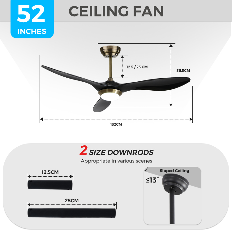 Elevate your living space with this 52-inch ceiling fan with ABS blades, designed for both style and functionality. The durable ABS material ensures long-lasting performance while providing a sleek and contemporary aesthetic. The integrated LED light offers soft and efficient illumination, perfect for modern living rooms, bedrooms, or dining areas.