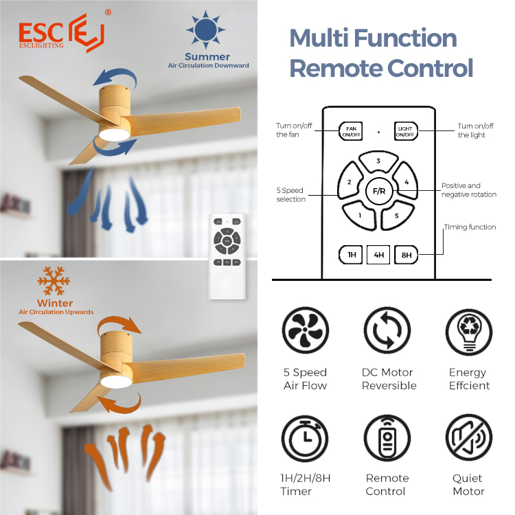 *Reversible Ceiling Fan: Low profile modern ceiling fan with 1-6 speed settings and reversible airflow for year-round comfort. Cools in summer, circulates warm air in winter. Adjustable speed and direction offer personalized comfort.