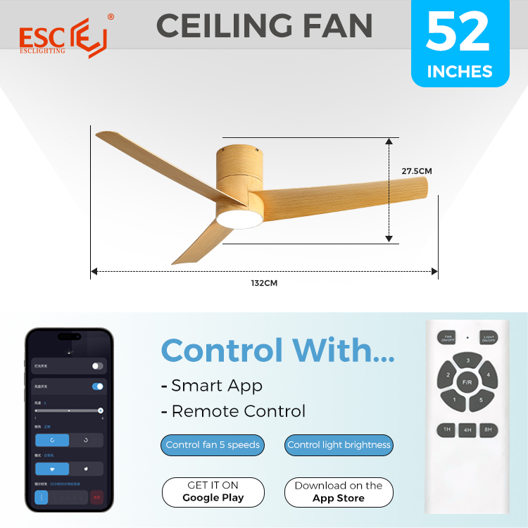 *Minimalist Ceiling Fan Flush Mount:ESC LIGHTING 52 inch ceiling fan with light for living room is a versatile choice for your living space. Perfect for outdoor patios, living rooms,kitchen,bedroom and office areas, it effortlessly blends function and beauty