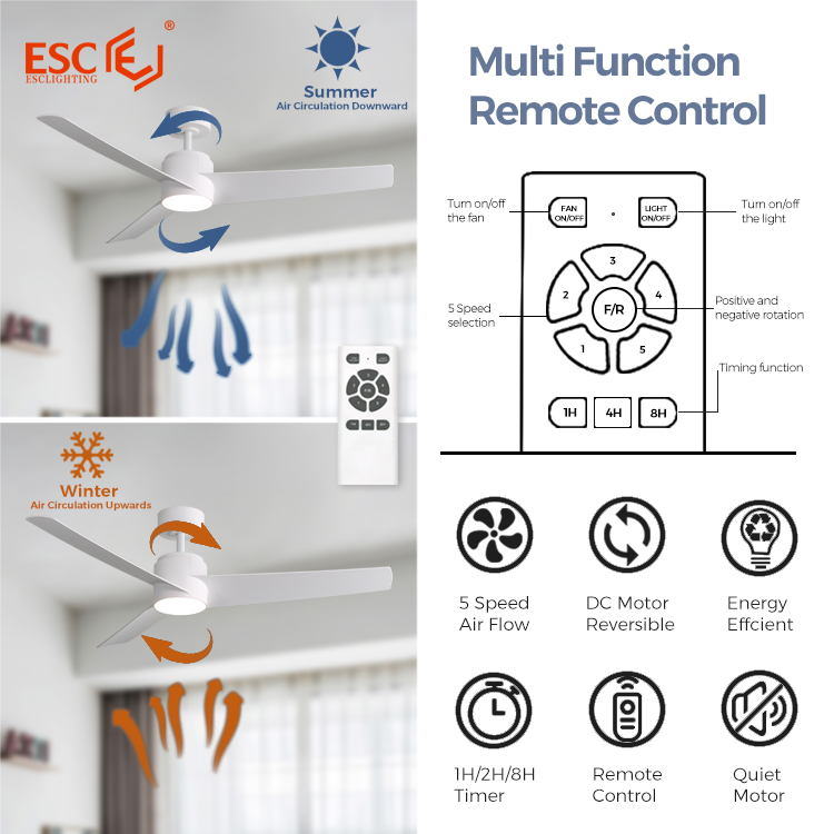 1.Ceiling Fans with Lights and Remote: This smart ceiling fan with lights can be controlled using a remote and app, allowing for operation in forward/reverse directions, 5-speed adjustment, and 3 light colors. Easily adjust light brightness and color to suit different environmental needs, set 1/2/4H timers, and control the fan and light separately for maximum convenience and ease of use.
