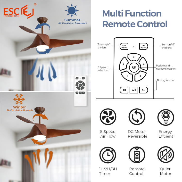 1.【Ceiling Fan with Lights with Remote Control & APP Function】: The remote control has forward and reverse rotation and 6 speeds. With mobile APP remote control function, ceiling fan with light [LED], 1440 lumens, 18W equivalent brightness, bright, soft and not blinding. Three colors of light can be adjusted. The brightness of the light can be adjusted, which is both energy-saving and eye-protecting. The ceiling fan is suitable for winter/summer use