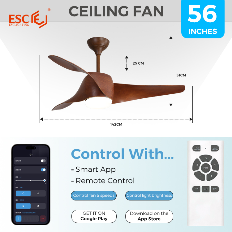 2.【Quiet Ceiling Fan With Memory Function】: 56-inch fan ceiling light, low noise, maximum speed 200r/min, decibel less than 30DB, with memory function, suitable for use in the living room, study, farmhouse, etc., and can be mounted on the tilted ceiling with a tilt of 13 degrees.