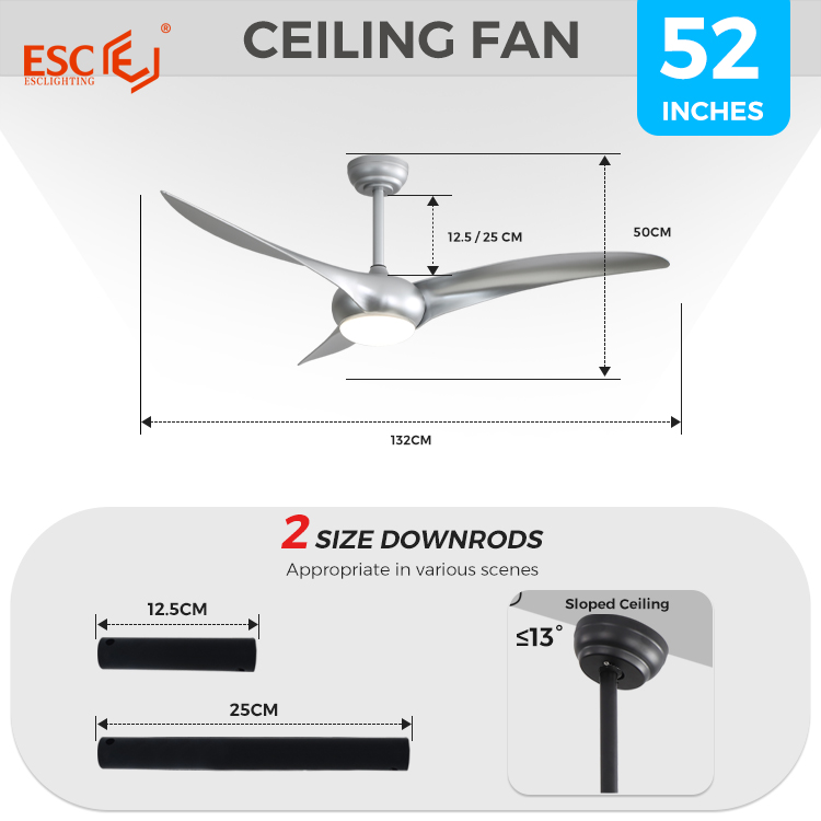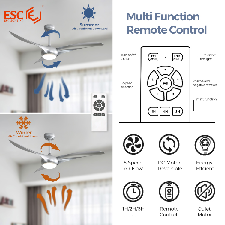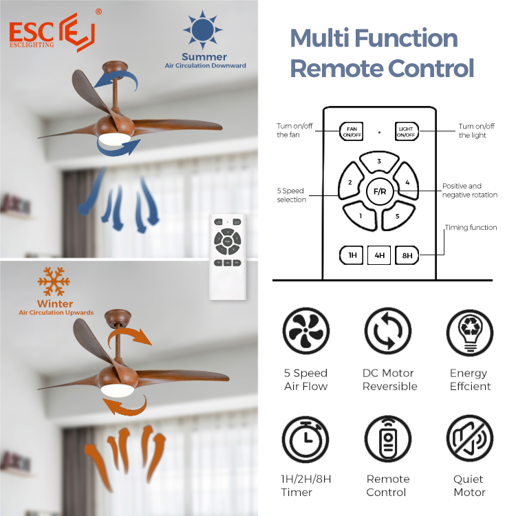 ESC decorative silent ceiling fan light kits 5 speed dc 40W chandelier ceiling fan led ceiling fans