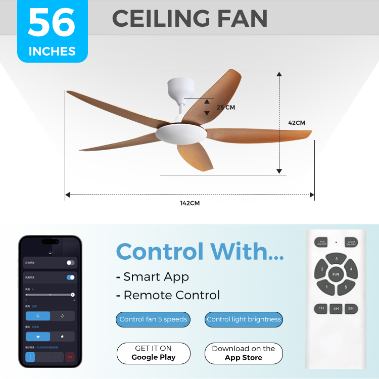 1.56 INCH CEILING FAN: The 56“ ceiling fan offers flat and inclined(<15°)mounting options, as well as 4″ and 8″ downrods. Recommended room size: 12 ft. x 12 ft. to 18 ft. x 18 ft. Ideal fans for living room, lounge, bedroom, kitchen