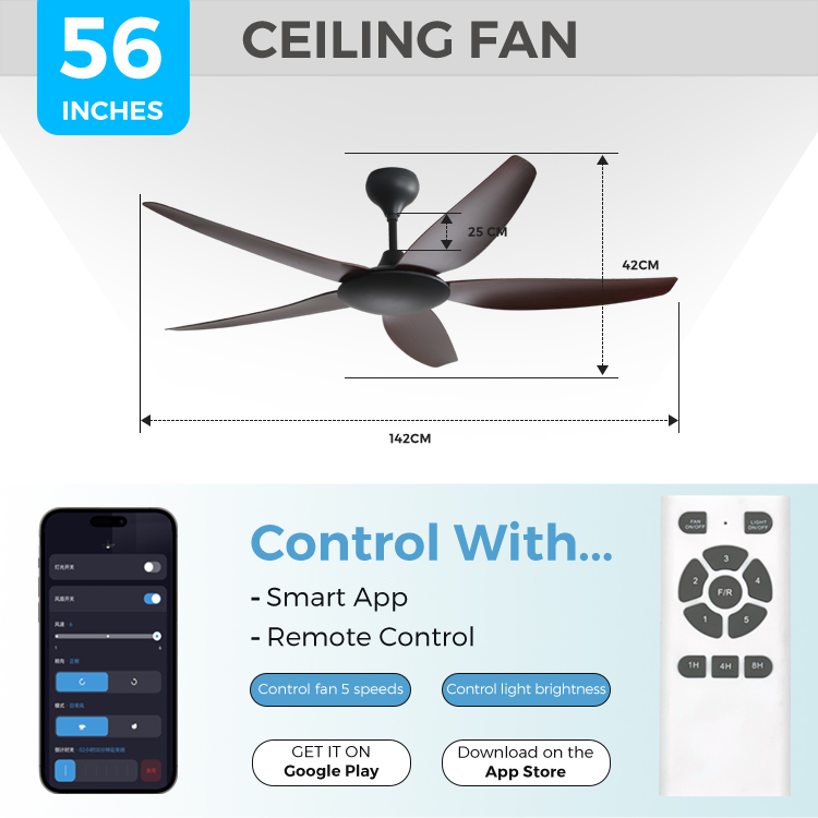 1.56 INCH CEILING FAN: The 56“ ceiling fan offers flat and inclined(<15°)mounting options, as well as 4″ and 8″ downrods. Recommended room size: 12 ft. x 12 ft. to 18 ft. x 18 ft. Ideal fans for living room, lounge, bedroom, kitchen