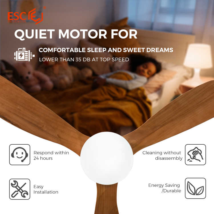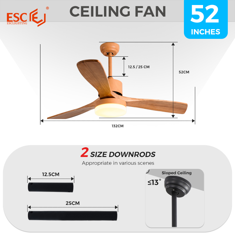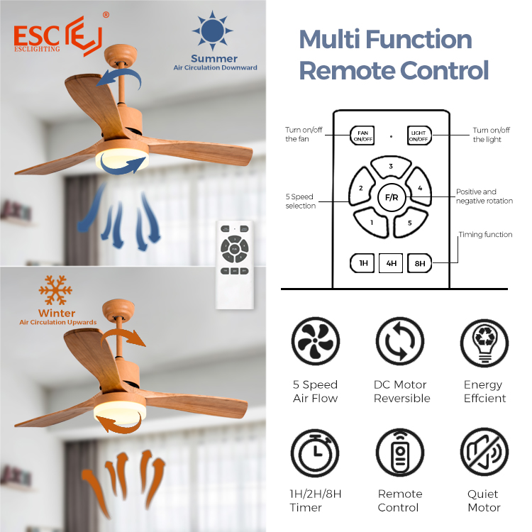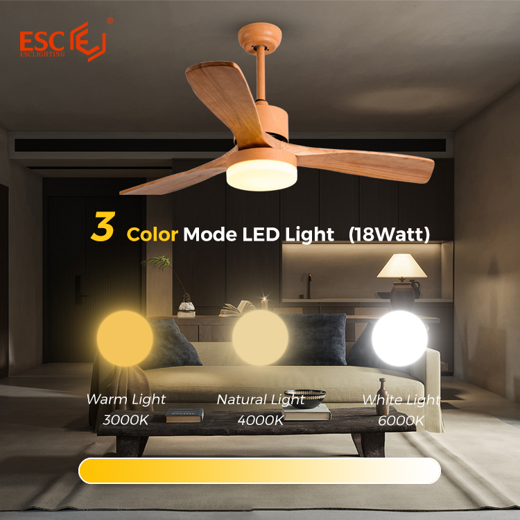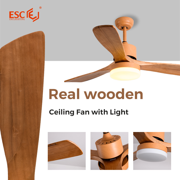 ESC LIGHTING ceiling fan remote tuya solid wood smart control ceiling fan with light for living room shop