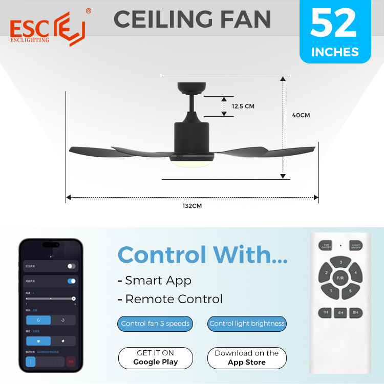 Ceiling fan with lights,Fan Motor and Designed fan blades